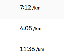 Exempel på kilometertider som inte bara berodde på backar, utan på om det fanns spår eller inte.